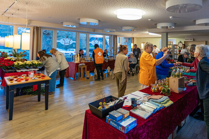 Bei selbstgebackenem Kuchen und Kaffee war im Speisesaal immer Betrieb, das Café Lottermoser lockte mit selbstgemachten Speck- und Zwiebelkuchen sowie Glühwein und Punsch und an den vielen Ständen gab es Schönes zu bewundern und zu erwerben.