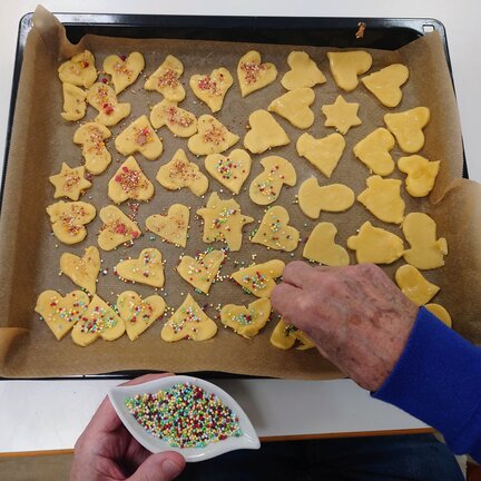 Die Adventsbäckerei in der Tagespflege ist im vollem Gange und nach den Vanilletalern wurden in den letzten Tagen noch fleißig Engelsaugen und Butterplätzchen gebacken.