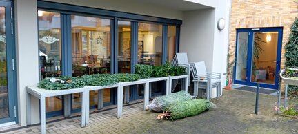 Alle Jahre wieder haben wir viele Weihnachtsbäume erworben, die jetzt darauf warten, eingestellt in die Wohnbereiche, den Speisesaal und den Andachtsraum zu kommen und geschmückt zu werden - die Vorfreude steigt!